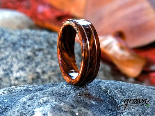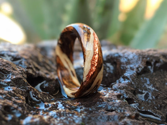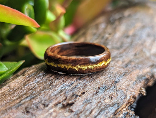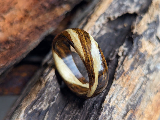 American Black Walnut Spiral Wood Ring with Sterling Silver Wire Inlay