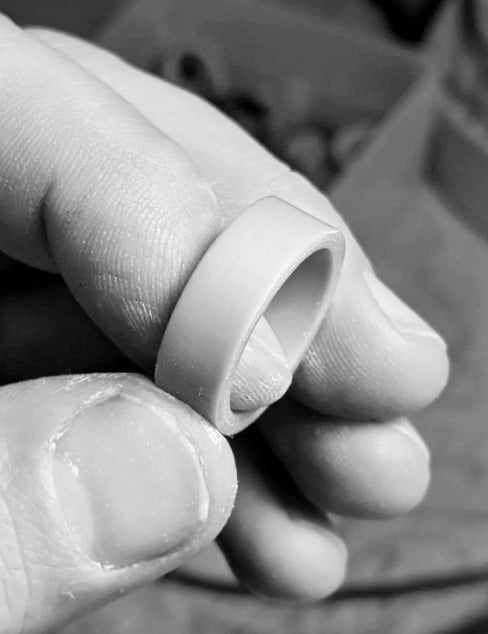 2. I make my rings to accurate US ring sizes, and the accuracy of the ring you try on at a store will most likely be accurate too, however, our fingers do change shape throughout the day so a ring that might feel comfortable in the morning, might be too tight at night. If you believe your hands swell throughout the day or in warmer weather, or if you don't have a local jewelry store, and you would like to be 100% sure, you can use my 3D-printed sizing ring service, see below...